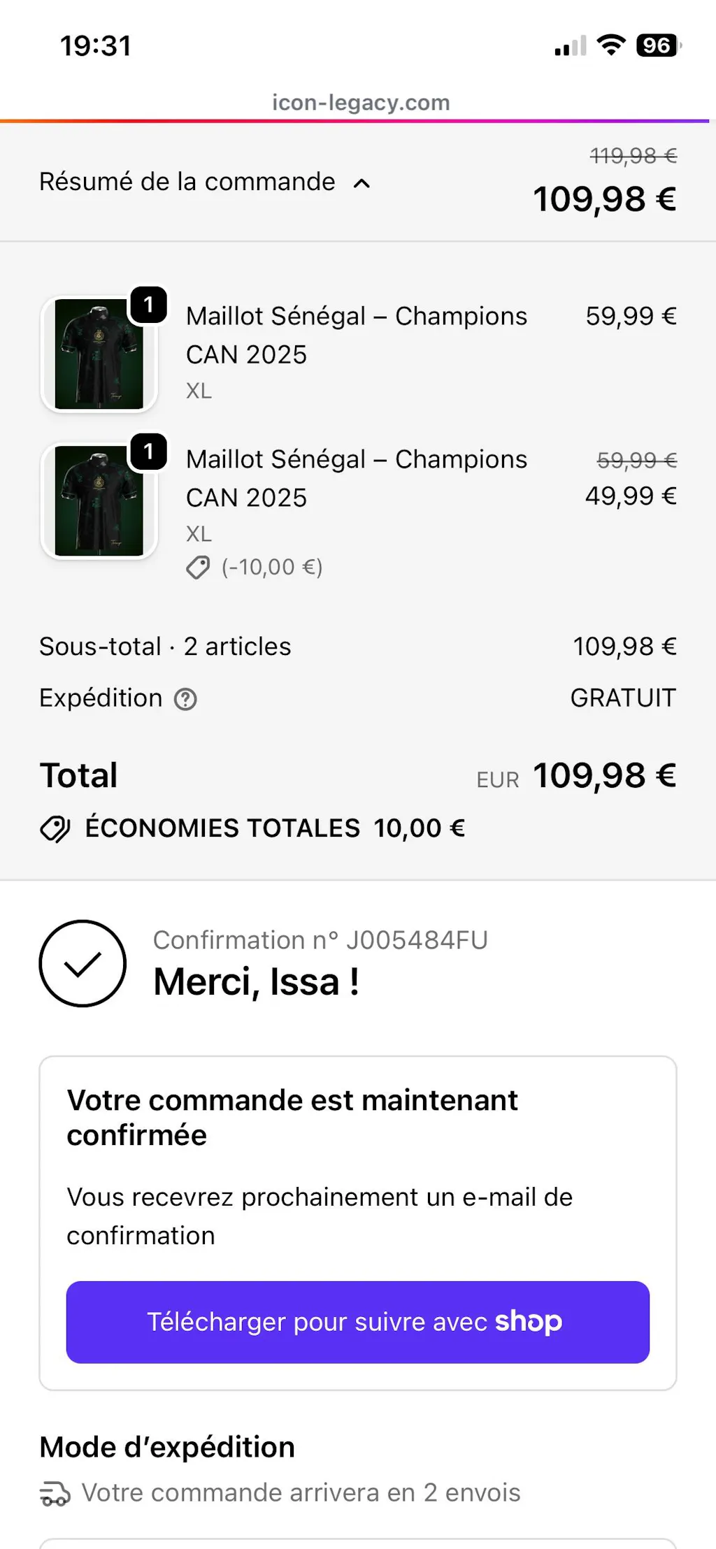 Ajoute 2 maillots à ton panier et le 2ᵉ passe automatiquement à -30% au paiement.